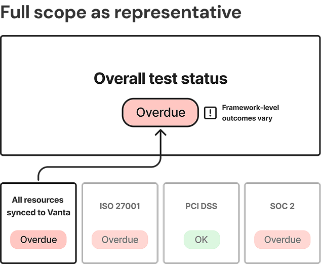 While the requirement behind the test might be the same, the systems being evaluated should differ by framework. At the time, Vanta evaluated them all against the same global scope.